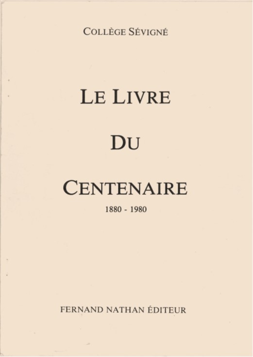 Couverture du Livre du Centenaire, textes rassemblées par Mme Jean Bernard (Amy Pichon), Présidente du Comité du Centenaire du Collège Sévigné.