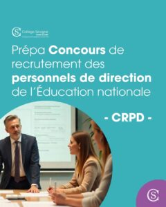 La préparation au Concours de recrutement des personnels de direction (CRPD) proposée par le Collège Sévigné s’adresse aux enseignants et cadres qui souhaitent accéder à des fonctions de pilotage au sein de Éducation nationale. Elle combine exigence, accompagnement individualisé et compréhension fine des réalités du métier.