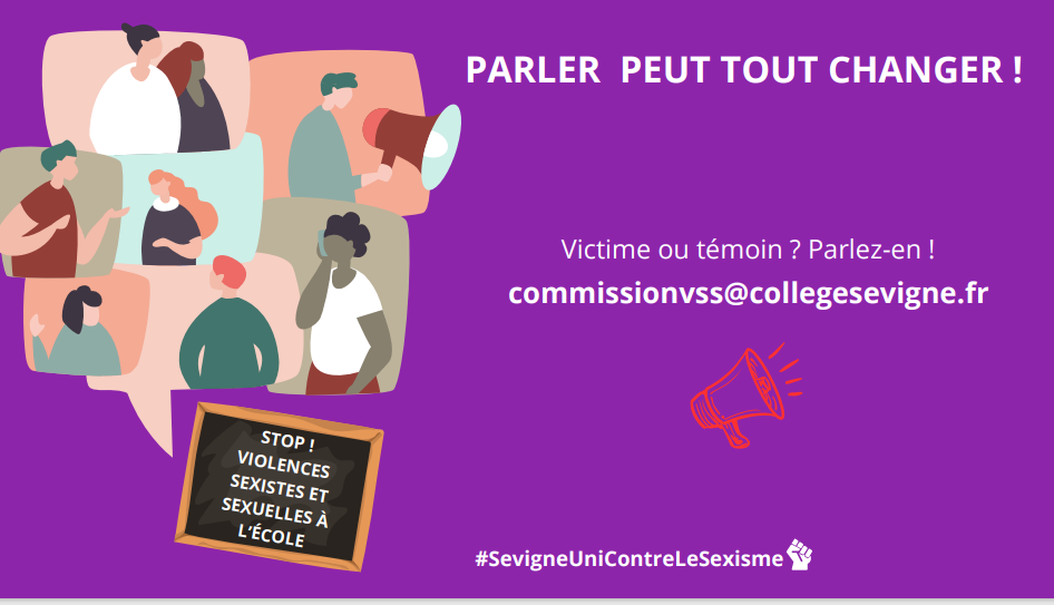 Vous êtes un élève de l'établissement ? Vous pouvez demander de l'aide à la commission de prévention des violences sexistes et sexuelles : commissionvss@collegesevigne.fr.
